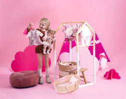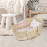 Ova prekrasna Mojšinova košara opremljena je tekstilnim džepićima s obje strane te uključuje ukrasnu poplun-dekicu, jastuk i madrac. Prikladna je za lutke veličine 40–45 cm, a odlično će poslužiti i kao prostor za odlaganje drugih igračaka, poput plišanaca.