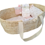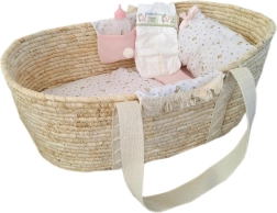 Košara je ručno pletena od osušenih kukuruznih listova, što je čini ekološkim proizvodom. U pakiranju se nalazi bočica za igru koja se može puniti vodom i jednokratna pelena. Uživajte u satima zabave s ovom predivnom košarom koja je ne samo stilska, već i praktična.