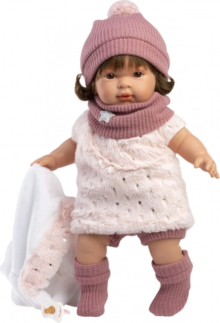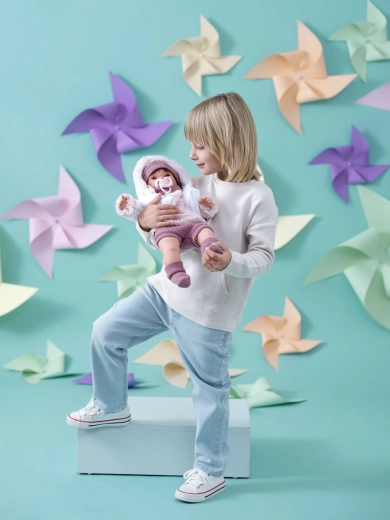 Jednostavno uklonite osigurač i lutka odmah počinje raditi! Nakon vađenja dude iz usta, lutka počinje izgovarati jednostavne riječi i ispuštati realistične zvukove plača. Dijete će naučiti kako umiriti plač pomoću dude. Lutka je ručno izrađena u Španjolskoj i isporučuje se u poklon-kutiji, idealnoj za svaku prigodu.
