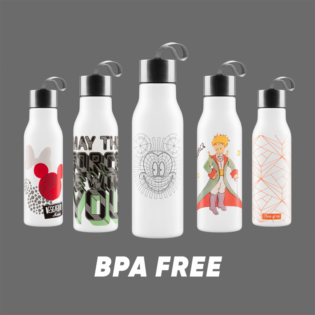 Praktična i stilizirana plastična boca s motivom Disneyjevog lika Mickeyja, idealna za djecu. Volumen od 600 ml osigurava dovoljno tekućine, bez BPA i prikladna za perilicu posuđa.