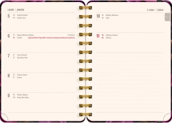 Praktični 18-mjesečni planer sa stilskim dizajnom s motivom ljubičastih cvjetova. Idealan za svakoga tko želi održati preglednost i organizaciju u 2025./2026.