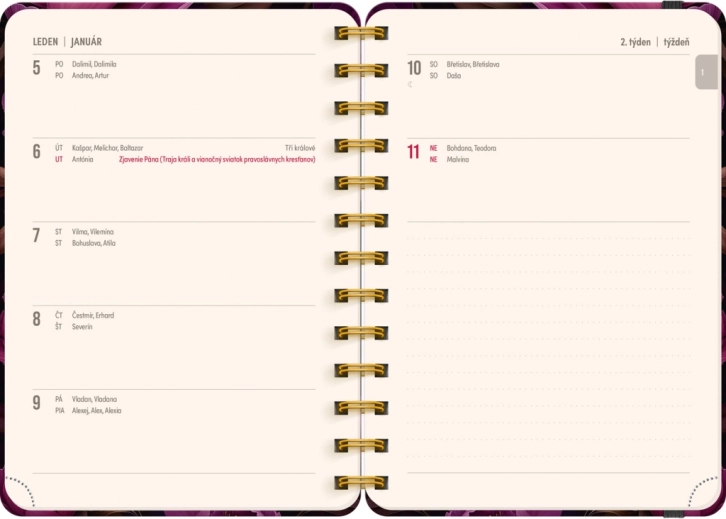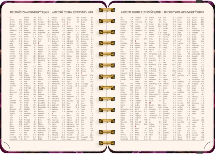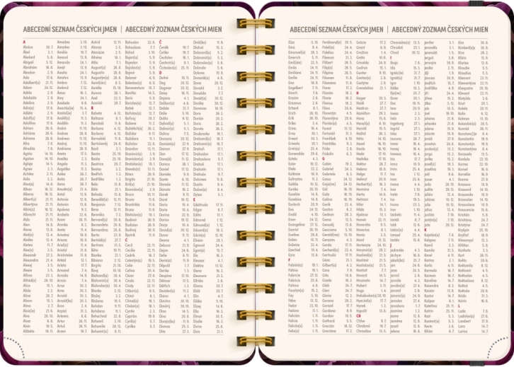 - Sadrži popis čeških i slovačkih imena s nazivima imendana.