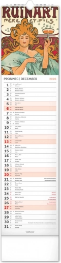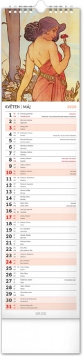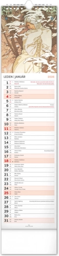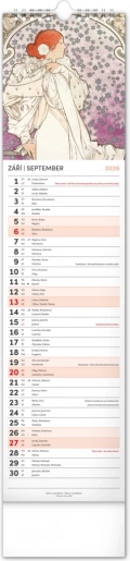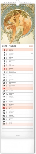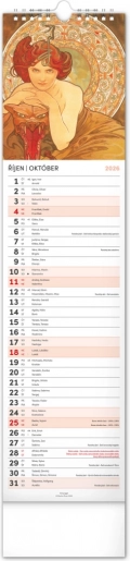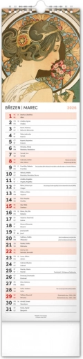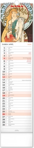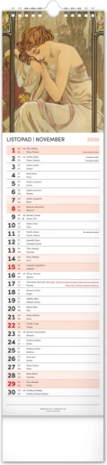 Otkrijte ljepotu secesijske umjetnosti uz zidni kalendar Alfons Mucha 2026. Uživajte svakog mjeseca u jedinstvenoj reprodukciji kultnih djela slavnog češkog umjetnika.