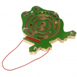 Zabavni drveni magnetski labirint u obliku simpatične žabe razvija finu motoriku, logičko razmišljanje i koordinciju oko–ruka. Uz pomoć magnetske olovke djeca pomiču šarene kuglice prema središtu ili po stazama te vježbaju koncentraciju i prepoznavanje boja. Prozirni pokrov drži kuglice sigurno unutra.