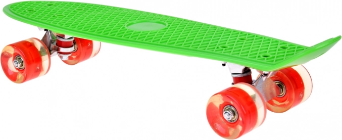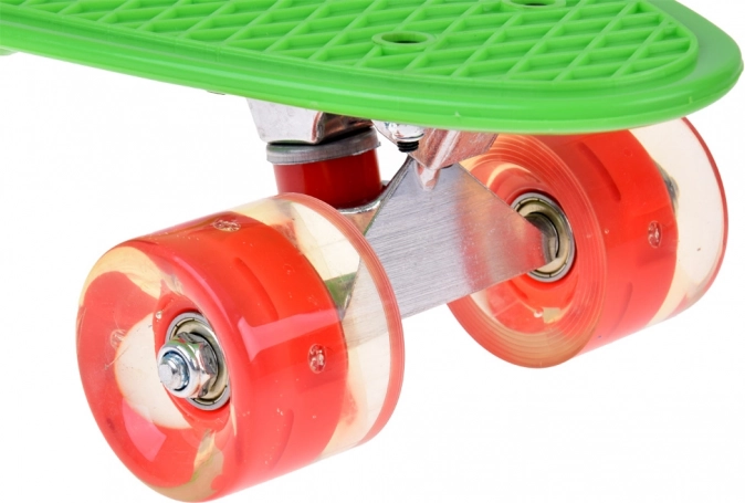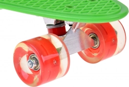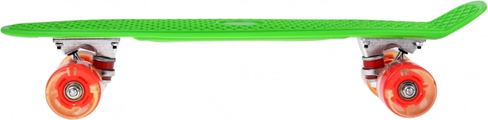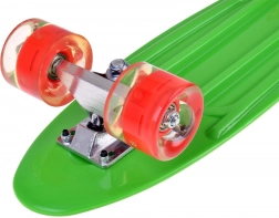 Kotačići skateboarda izrađeni su od izdržljivog materijala prekrivenog posebnom gumom, što pruža izvrsno prianjanje i prigušivanje vibracija. Dodatna atrakcija su integrirane LED diode koje svijetle tijekom vožnje i daju skateboardu izniman izgled, a ujedno povećavaju vidljivost korisnika – bez potrebe za baterijama! Diode se napajaju magnetskom energijom koja se stvara pri okretanju kotača.