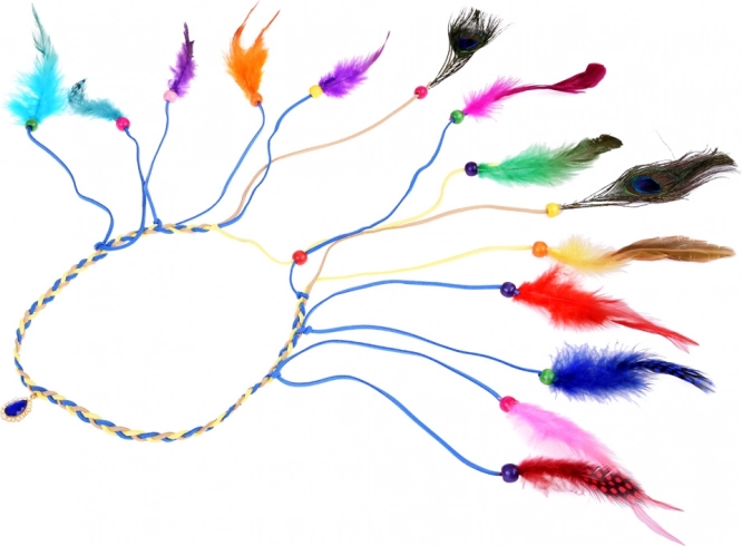 Boho traka za kosu s raznobojnim perima i perlicama