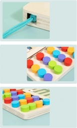 Drvena igraća ploča ima različite uzorke za lako učenje boja i koordinacije. Potiče kreativnost i koncentraciju djece.