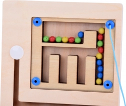 Igra sadrži šarene kuglice koje djeca pomiču magnetskom olovkom, što potiče finu motoriku i koordinaciju.