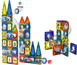 Magnetične kocke inovativan su konstrukcijski set koji nudi bezbroj mogućnosti za stvaralačku zabavu djece. Set sadrži kocke različitih oblika u četiri boje (narančasta, žuta, tamnoplava, zelena) za izgradnju dvorca i staze za kuglice.