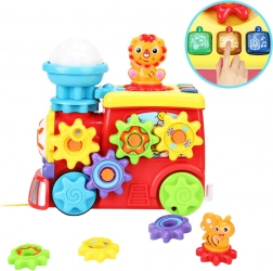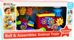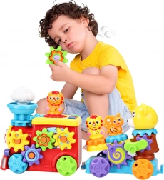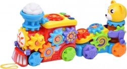 Veseli vlakić s prikolicom i medićem osmišljen je tako da ne samo zabavlja, već i razvija finu motoriku, pažnju i maštu djeteta od prvih trenutaka igre. Igračka je opremljena rotirajućim zupčanicima koji uključuju dječje ručice i pomažu razvijati precizne pokrete. Svjetlosni i zvučni efekti stimuliraju osjetila i uvode dijete u svijet audiovizualnih podražaja. U središtu vlakića nalazi se pokretni oblačić, a ispred prikolice pčelica koja se aktivira okretanjem posebne ručice kod medića.