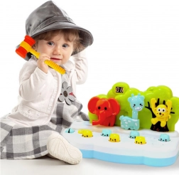 Ova šarena igra privlači male igrače jer spaja veselu zabavu s razvojem važnih vještina poput refleksa, motoričke koordinacije i koncentracije. Zadatak je priloženim čekićem pogoditi male figurice životinja koje se nasumično pojavljuju iz otvora – to djeci ne donosi samo mnogo zabave, već i potiče spremnost te ubrzava reakcije.