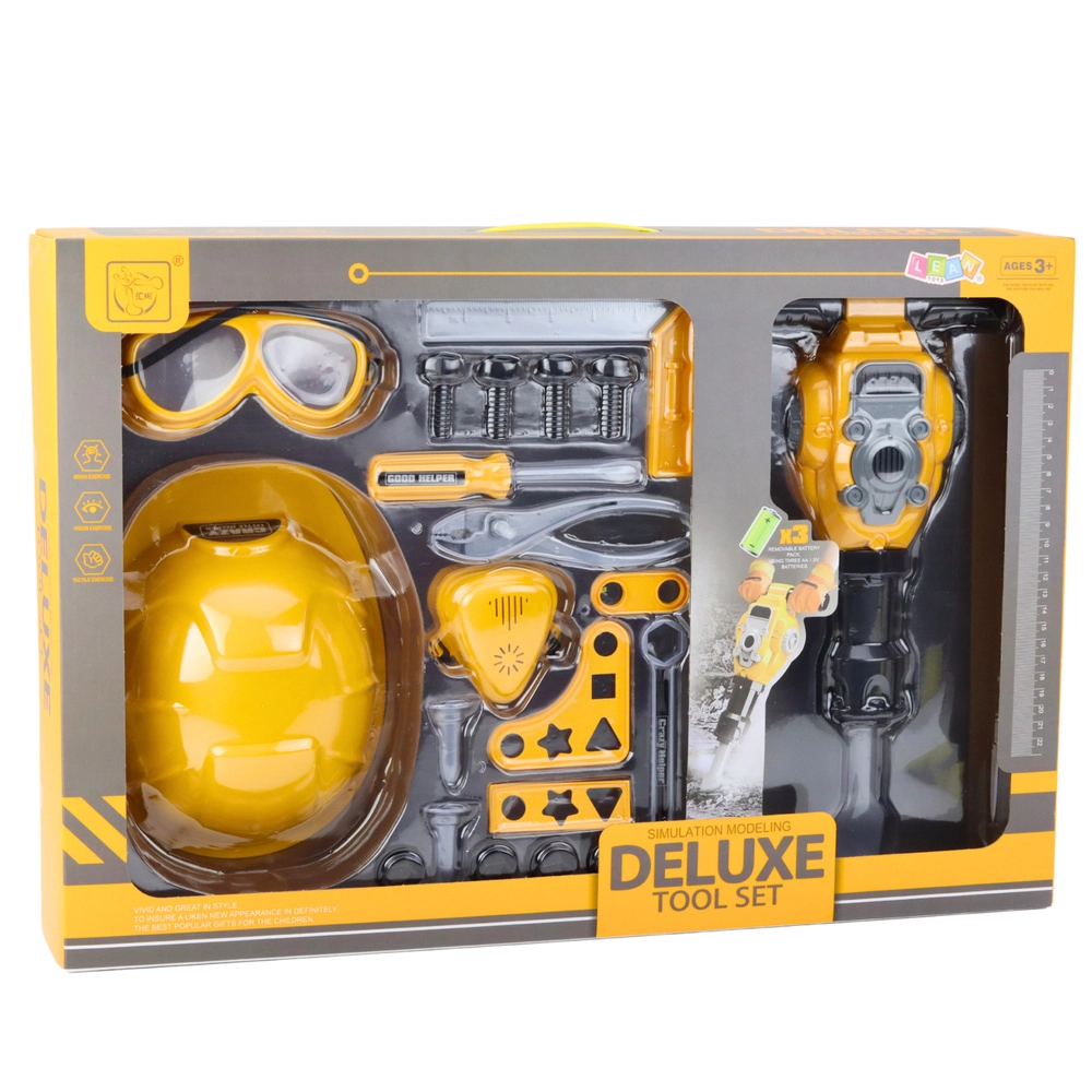 Deluxe Tool Set je kompletna, realistična i privlačna igračka za djecu koja vole promatrati svijet odraslih i sanjaju o vlastitom radionickom prostoru. Ovaj dječji set uključuje 21 element koji djetetu omogućuju uživljavanje u ulogu graditelja ili inženjera.