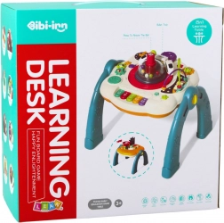 S jedne strane stola nalazi se interaktivna obrazovna ploča s raznobojnim efektima koji potiču igru i istraživanje. Nudi zvučne i svjetlosne efekte te pokretne elemente poput šarenog klavirića, bubnja i okretnih kotačića. Ova aktivnost pomaže razvijati osjete, finu motoriku, koordinaciju oko-ruka i logičko razmišljanje.