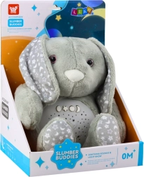 Plišani zeko s projektorom idealan je pratitelj za djecu od prvih dana života. Mekani sivi pliš s dekorativnim ušima pruža estetiku, a interaktivna ploča olakšava uspavljivanje.
