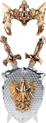 Dječji viteški set dizajniran je s iznimnom pažnjom na detalje. Bogato ukrašene drške, sjajne površine i reljefni uzorci omogućuju djeci prenijeti se u doba viteških dvoboja. To je igračka koja ne samo ugodna je oku, već i potakne maštu za stvaranje vlastitih priča.