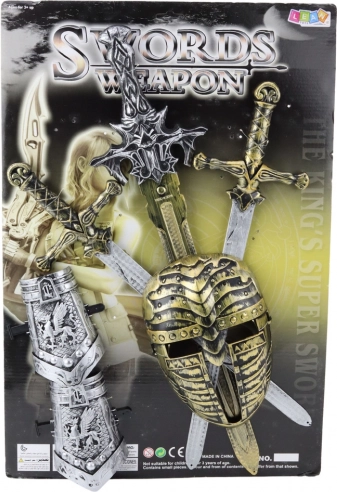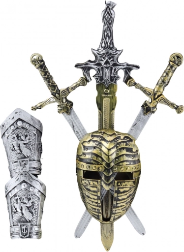 Uz ovaj viteški set djeca se mogu pretvoriti u odvažne borce. Zahvaljujući stiliziranoj maski dobit će viteški izgled i osjećat će se kao u srednjem vijeku. Set sadrži tri mača različitih veličina, dekorativnu masku i dvije štitnike za ruke koji cijelom izgledu daju realističan viteški stil.