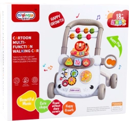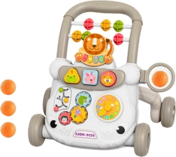 Guralo ima šaren dizajn s motivima životinja poput lava i zeca, koji privlači pažnju djece i potiče ih na aktivnost. Čvrsta konstrukcija osigurava sigurnost, dok široka baza i četiri izdržljiva kotača povećavaju stabilnost. Posebna ručka pomaže kada dijete uči hodati. Ugrađene zvučne funkcije i mehaničke igračke razvijaju koordinaciju te osjetila sluha i dodira.