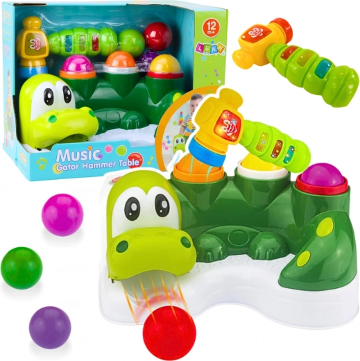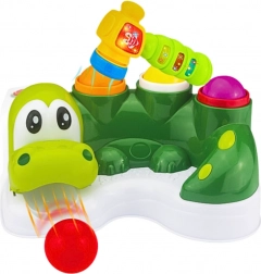 Dijete koristi čekić za udarce po šarenim lopticama koje upadaju u igračku i izbijaju iz pokretnih čeljusti krokodila, stvarajući tako zabavan tobogan. Interaktivni čekić svijetli, svira melodije i ispušta druge zvukove pritiskom na posebno dugme s klaunom.