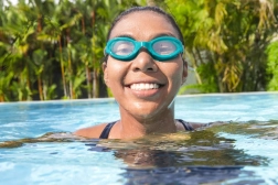 Izdržljive polikarbonatne leće s UV filtrom štite oči od štetnog sunčevog zračenja na vanjskim bazenima i na moru.