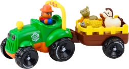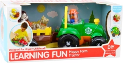 Igračka je opremljena s tri različite melodije a tijekom vožnje svjetla na prednjem dijelu traktora trepere, što dodatno privlači pažnju djeteta. Traktor se kreće glatko i bez problema vuče prikolicu na kojoj su posebno označena mjesta za figurice životinja. Svaka životinja odgovara samo jednom mjestu, a njeno pravilno postavljanje aktivira odgovarajući zvuk. Ovo je izvrstan način za razvoj logičkog razmišljanja, asocijacija i učenje zvukova životinja.