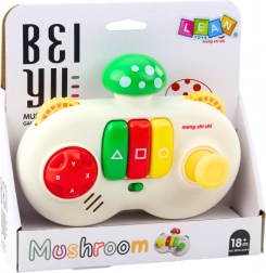 Ova šarena interaktivna igračka dizajnirana je u obliku kontrolera s gornjim dijelom u dizajnu gljive u crvenoj, zelenoj ili žutoj boji, čime privlači pažnju djece. Konzola je opremljena šarenim gumbićima, zvučnim efektima, okretnim kotačićima s ispupčenom teksturom i trima središnjim tipkama u obliku trokuta, kvadrata i kruga.