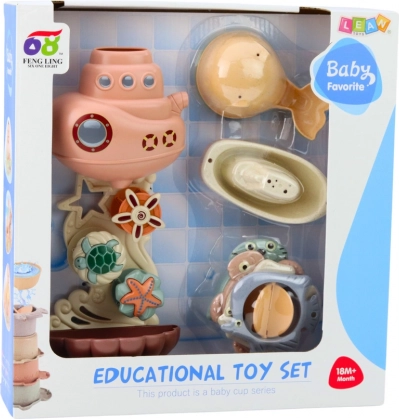 Središte seta je vodena stanica s prijanjkama koju jednostavno pričvrstite na stijenke kade ili na pločice. Pruža stabilnost i udobnost pri korištenju te istovremeno organizira prostor za igru na privlačan i siguran način.