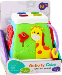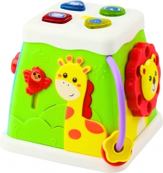 Interaktivna edukativna kocka pruža sigurnu zabavu za vaše dijete. Svaka strana kocke nudi različitu aktivnost koja odgovara razvojnoj fazi djeteta i pomaže pri treningu motoričkih vještina, koordinacije vida i pokreta te logičkog razmišljanja.