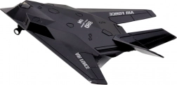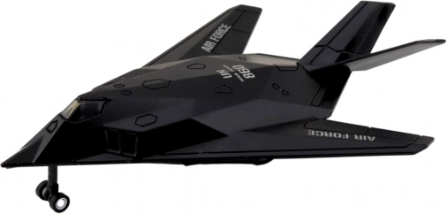 Crni vojni lovac savršena je igračka za sve male ljubitelje zrakoplovstva. Model odražava sofisticirani dizajn i realistične detalje, uključujući autentične natpise zračnih snaga. Lovac je opremljen stražnjim pogonom koji omogućuje automatsko kretanje po podu nakon laganog povlačenja.