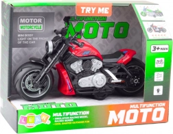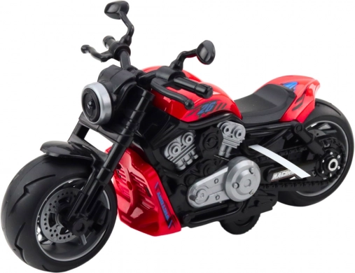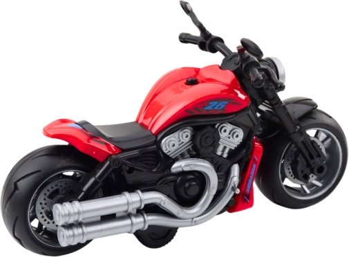 Motor je dizajniran u intenzivnoj crvenoj boji i izrađen od visokokvalitetne plastike otporne na svakodnevnu upotrebu. Opremljen je širokim kotačima, masivnim tijelom i ergonomskim rukohvatima, što osigurava stabilnost i udobnost tijekom igre. Njegov izgled inspiriran je klasičnim jednim tragom vozila, što mu daje autentičnost.