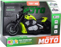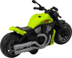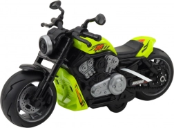 Dječji motor ističe se intenzivnom zelenom bojom i izrađen je od visokokvalitetne plastike otporne na svakodnevnu upotrebu. Motor ima široke kotače, robusno tijelo i ergonomske ručke za stabilnost i udobnost tijekom igre. Njegov je oblik inspiriran klasičnim jednopruznim vozilima, a detalji poput realistično oblikovanog motora i linija karoserije daju motociklu autentičan izgled.