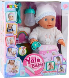 Lutka je obučena u šarenu bluzu s zecom, udobne hlače i slatku kapicu. U ruci drži dudu, a u pakiranju ćete pronaći i potrebne dodatke za hranjenje i njegu, uključujući bočicu, kahlicu i pelenu.