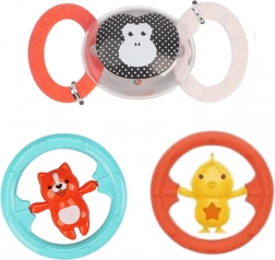 Set je izrađen od sigurnih i netoksičnih materijala koji zadovoljavaju najviše standarde kvalitete. To jamči sigurno i dugotrajno korištenje. Ova igračka kombinira funkcije šuškice, grickalice i igračke te je savršen pratilac za vašu bebu, pomažući joj da se razvija na mnogim razinama.