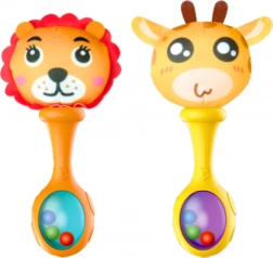 Set zvečkuća je dizajniran s obzirom na potrebe rastućeg djeteta. Ima ergonomski oblik prilagođen malim ručicama i mekanu tekstilnu površinu, koja je ugodna na dodir. Žive boje i motivi životinja, kao što su lav i žirafa, odmah privlače pažnju djeteta i stimuliraju njegova osjetila.