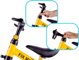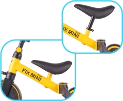 Trike Fix Mini raste s djetetom: u trenu ga pretvorite iz gurala s tri kotača u tricikl s pedalama, a zatim u trenažni način s užim razmakom stražnjih kotača za vježbanje ravnoteže. Podesivi volan (41–50 cm) i sjedalo (31–38 cm) osiguravaju ergonomsko podešavanje za male vozače od 18 mjeseci do 4 godine.