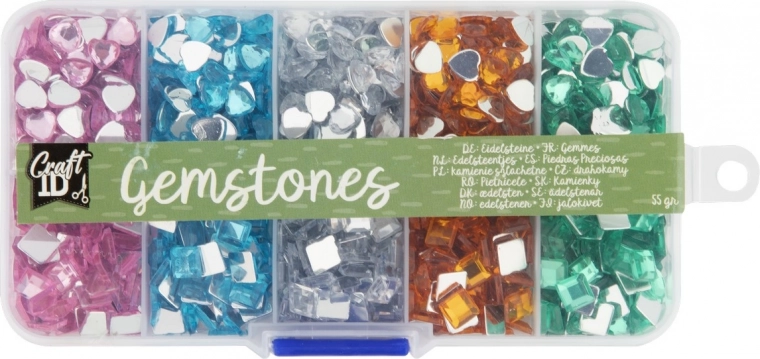 Set šarenih dragulja nudi prekrasno kamenje u 5 boja i 2 oblika, sve zapakirano u praktičnom plastičnom organizatoru.