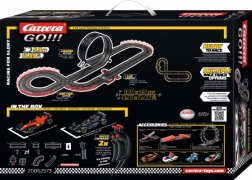 Set je kompletan i spreman za vožnju: sadrži napojni element, mehanički brojač krugova, dva kontrolera s Turbo funkcijom, looping, križanje, ograde i potpornje. Analogni sustav CARRERA GO!!! prikladan je za djecu od 6 godina, ali će zabaviti i odrasle ljubitelje motosporta.