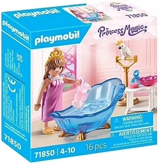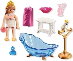 Otkrijte luksuz kraljevskog odmora s PLAYMOBIL Kupaonicom za princeze. Kupaonica se može napuniti vodom, što omogućuje savršenu relaksaciju. Princeza nosi ručnik koji se lako može skinuti ili ponovno staviti prema potrebi. Set uključuje i prekrasne dodatke poput krune, ogrlice i drugih, kako biste mogli stvarati čarobne priče.