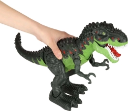 Otkrijte zabavu s elektroničkim dinosaurom T-REX, koji hoda, ispušta realističan rika i ima svjetleće oči i čeljust. Pokretljive prednje šape i pokretna glava dodatno pojačavaju prapovijesni doživljaj. Jednostavno upravljanje jednim gumbom. Boja: zelena.