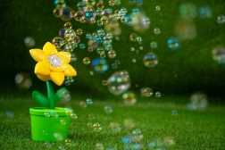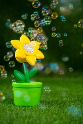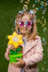 Dizajn u obliku žutog cvijeta u zelenoj posudi privlači pažnju na prvi pogled i pretvara svaku igru u veselu predstavu punu mjehurića.