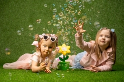 Dovoljno je umetnuti 3× AA baterije, uliti otopinu i uključiti. Stabilna „posuda za cvijeće” čvrsto stoji i na travi i na stolu, pa se možete samo diviti mlazu mjehurića.