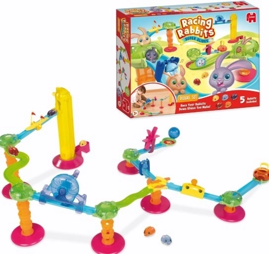 Konstrukcijski set Deluxe Racing Rabbits nudi sate kreativne zabave za djecu. Složite vlastitu trkaću stazu s pojedinačnim dijelovima koji se lako spajaju. Smjestite jednog od 5 simpatičnih zečića u dizalo, podignite ga i gledajte kako se spušta niz stazu!