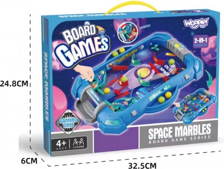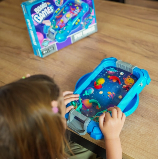 Otkrijte čar fliper igre u dječjem izdanju. Ova stolna igra sa svemirskim motivom brenda WOOPIE podsjeća na pravi fliper – s izbacivačem, polugama i ciljanim poljima za bodove. Zahvaljujući jednostavnim pravilima u igru se lako uključuju i mlađa djeca te mogu vježbati preciznost, opažanje i planiranje.