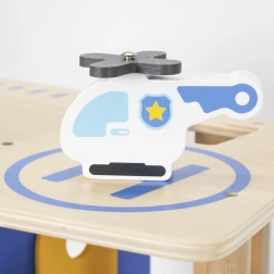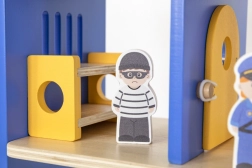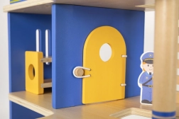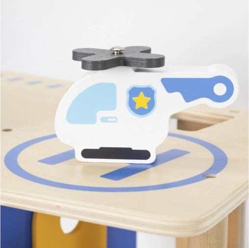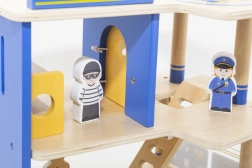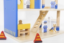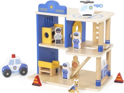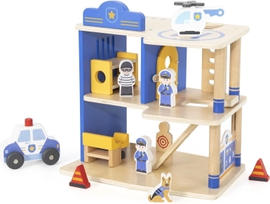 Trokatna policijska postaja VIGA osmišljena je za male policajce od 3 godine. Čvrsta drvena konstrukcija s plavim detaljima nudi lak pristup svim razinama i omogućuje djeci realistično odigravanje intervencija, potjera i uhićenja počinitelja. Zahvaljujući heliodromu, ćeliji i streljani igra dobiva nove dimenzije.