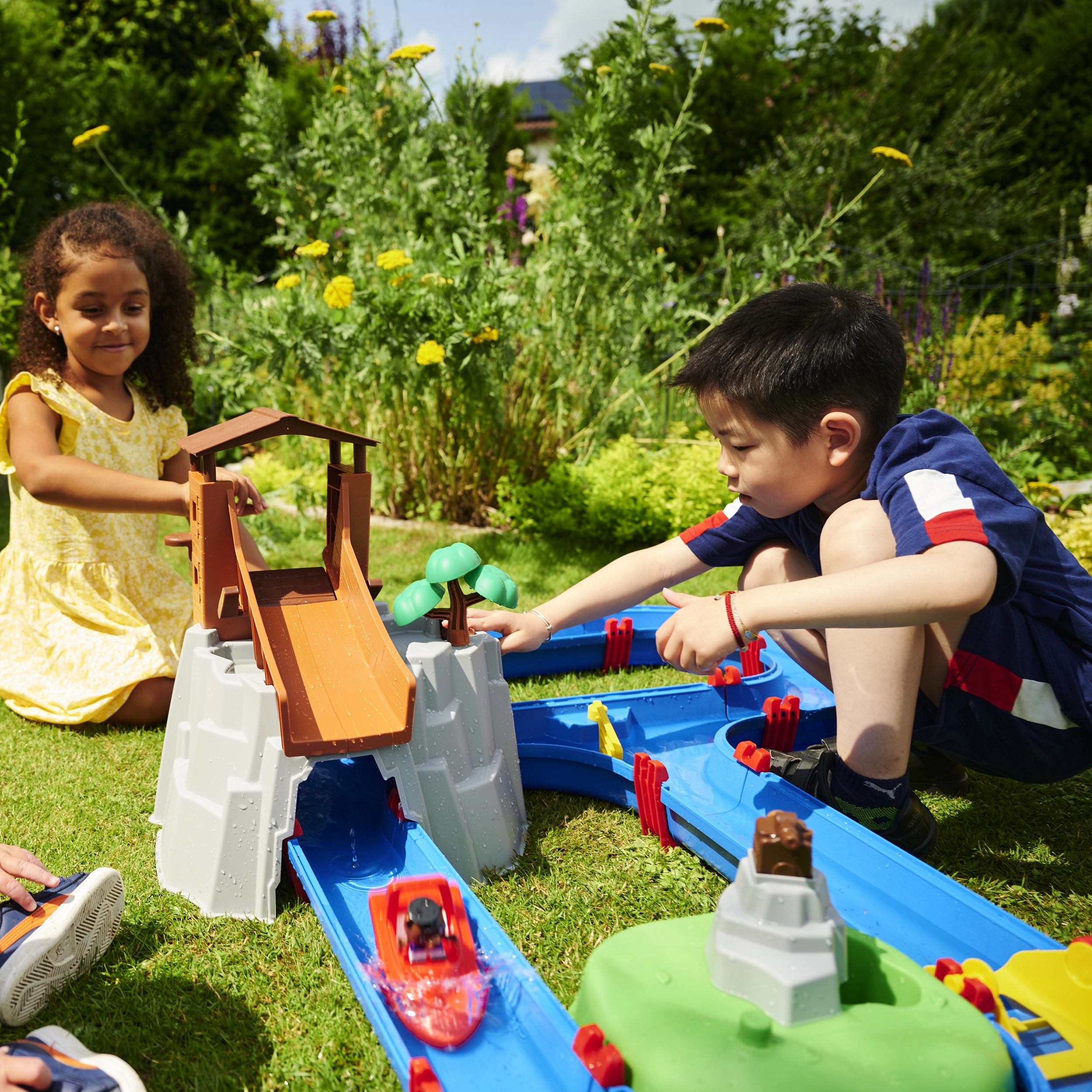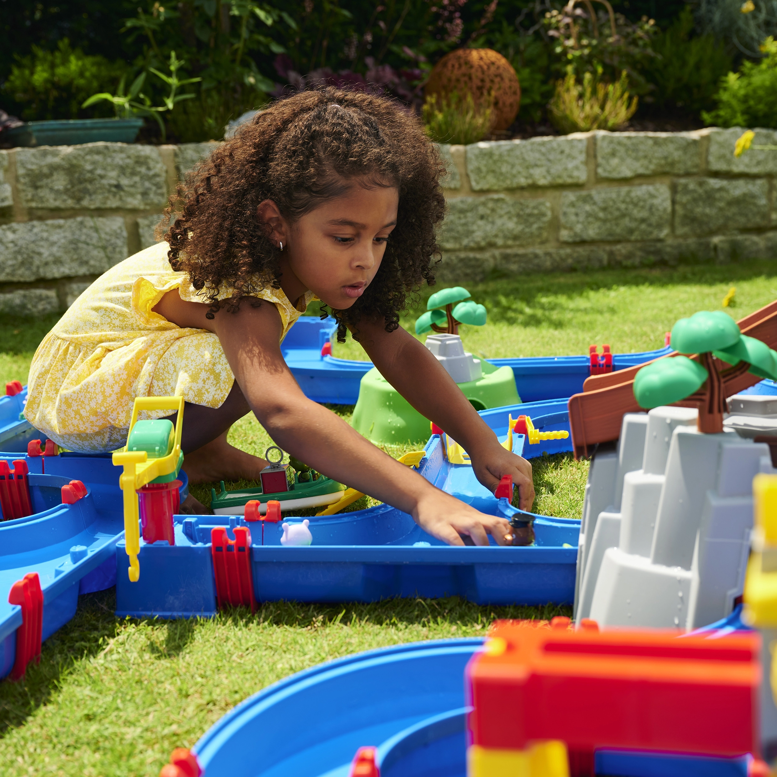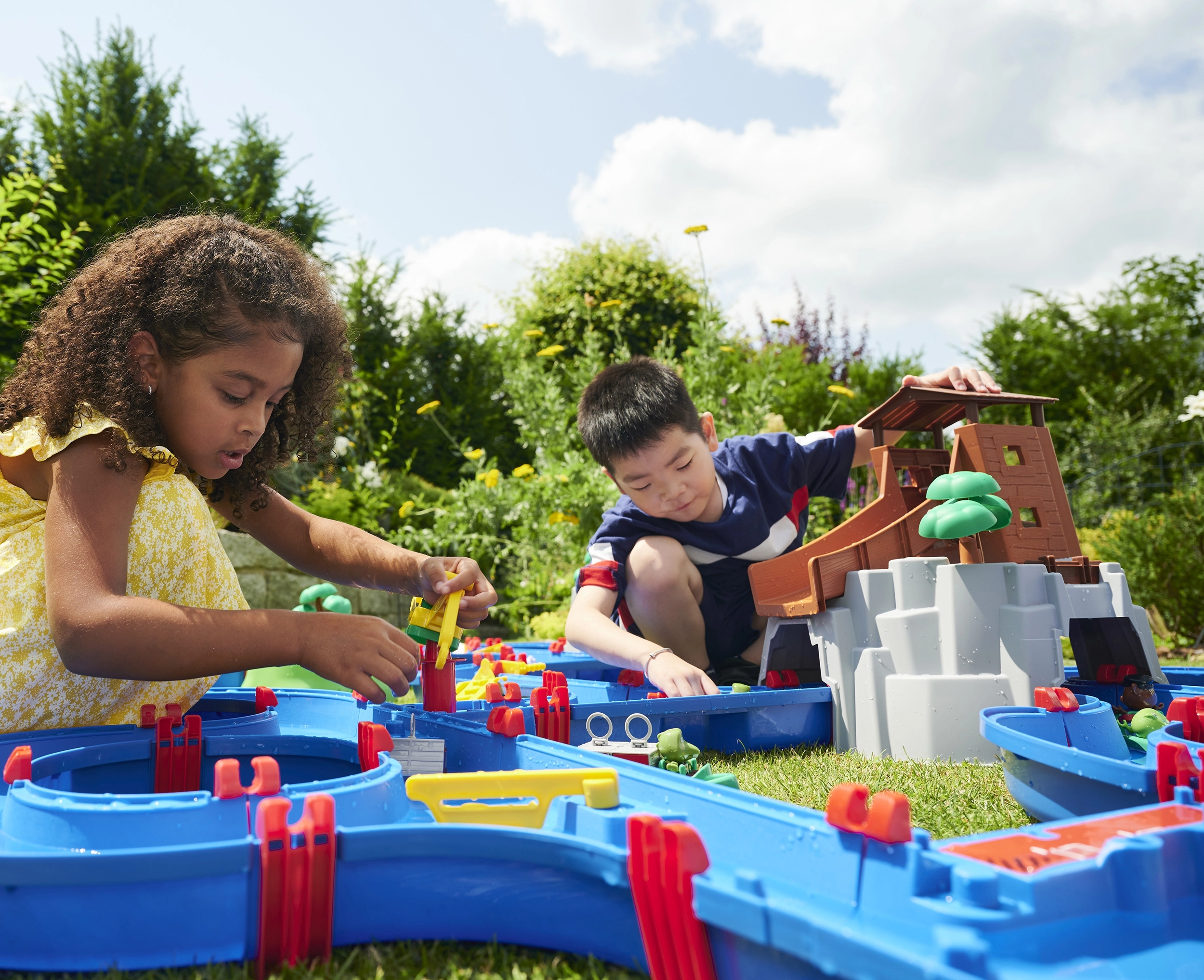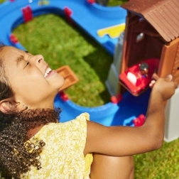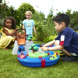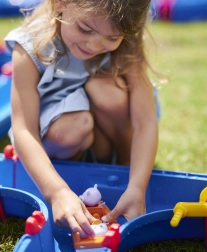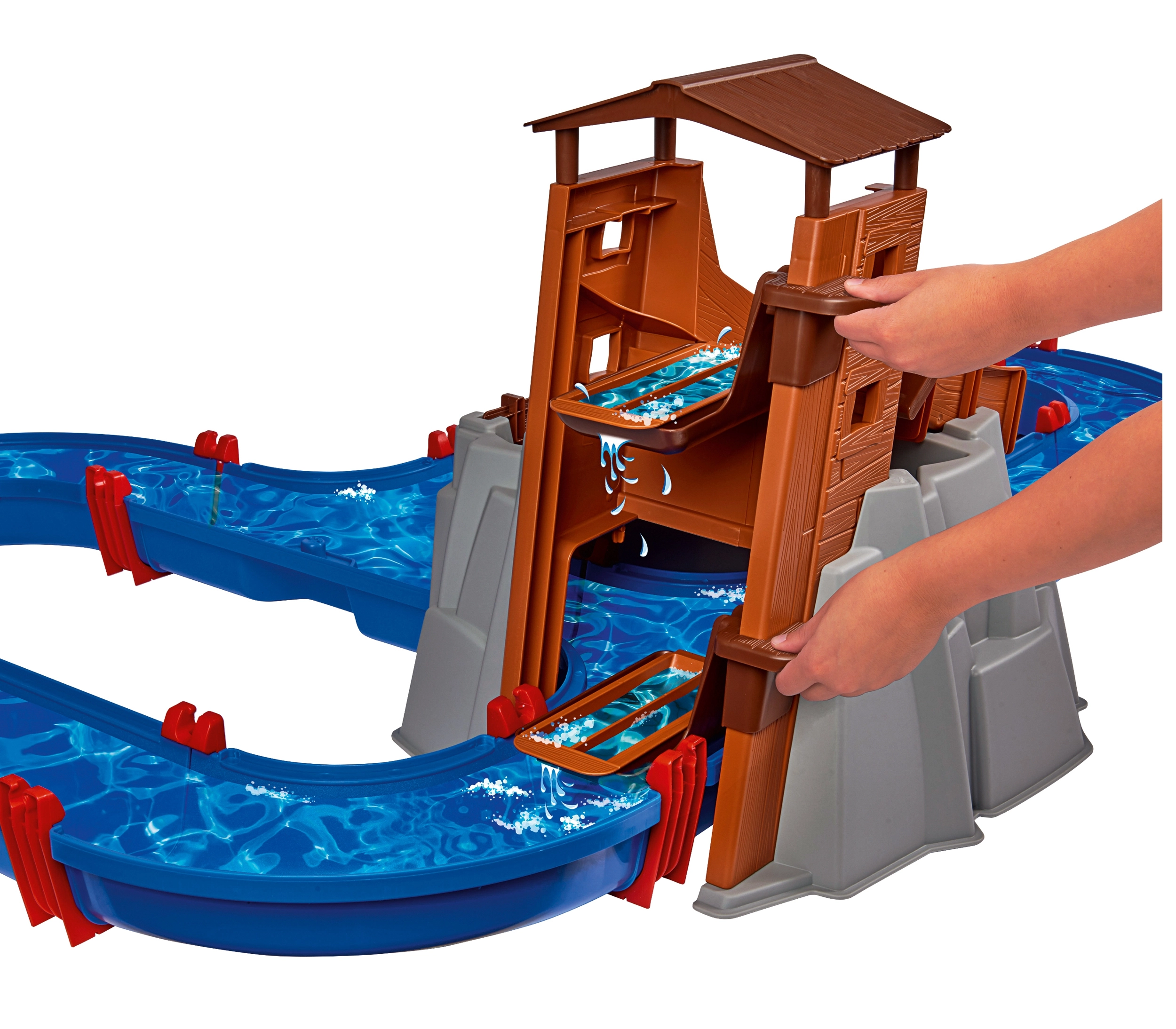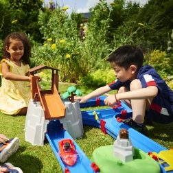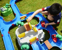 Vodnička staza "Aquaplay" nudi široke mogućnosti zabave i učenja. Uz sustav kanala, ručicu koja stvara struje i vodeni top, djeca uče kako funkcioniraju vodene struje i snaga vode. S figuricama medvjeda i krokodila te brodićima, mali znanstvenici mogu zaroniti u fascinantni svijet hidrodinamike.