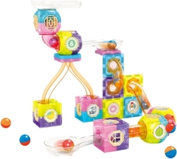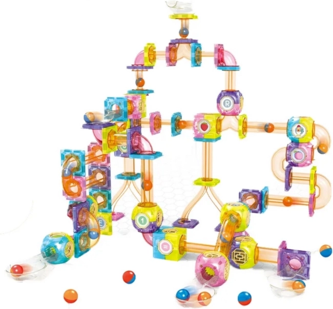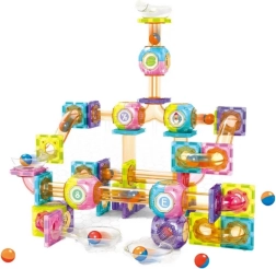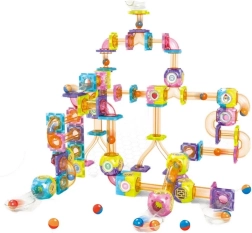 Ova raznolika magnetska kuglična staza nudi beskrajne mogućnosti gradnje. Prozirni dijelovi u duginim bojama potiču djecu na eksperimentiranje, dok magneti čvrsto drže konstrukcije na okupu. Uključene su cijevi, zavoji, spojke i zdjelice koje stvaraju gladak prolaz kuglica.