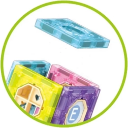Djeca uvježbavaju prostorno mišljenje, planiranje i koordinaciju oko–ruka. Zabavan oblik učenja potiče strpljenje, rješavanje problema i samostalnost. Šarene naljepnice dodatno omogućuju personalizaciju građevina i razvoj mašte.