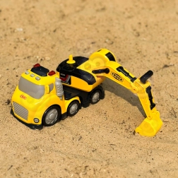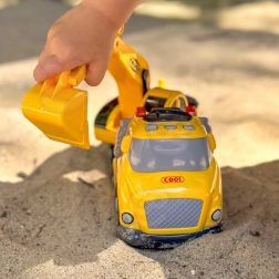 Ruka s kašikom može se podizati i spuštati te tako lako zahvaćati i istresati pijesak ili sitne igračke. Idealno za igru na gradilištu.