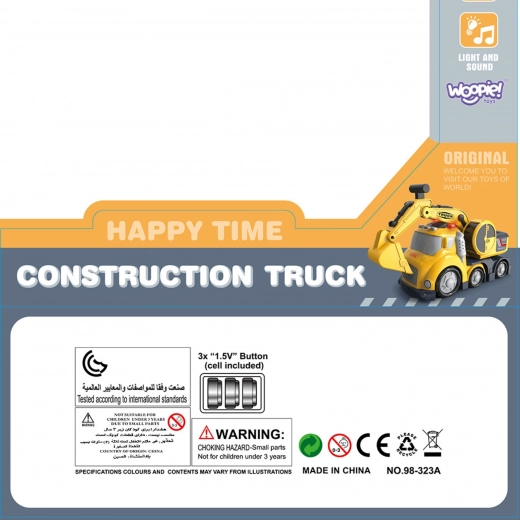 Woopie bager CITY TRUCK sa svjetlima i zvukovima. Izdržljiva igračka s pokretljivom rukom, idealna za pijesak i dom. Baterije u pakiranju, potiče kreativnost.