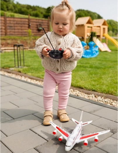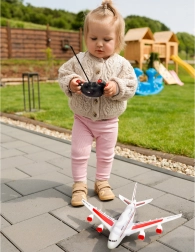 Model je namijenjen vožnji po podu ili pločniku – djeca mogu vježbati rulanje, skretanje i zaustavljanje, stvarati vlastitu „zračnu luku“ i scenarije zračnog prometa. Daljinski upravljač jednostavan je za korištenje i potiče razvoj motorike i mašte.
