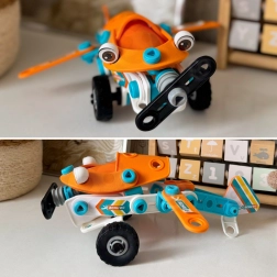 Sastavi svoj vlastiti avion! Ovaj kreativni STEM građevni set omogućuje djeci korak po korak montirati veseli model s propelerom i kotačima. U paketu se nalaze montažni alati, naljepnice i svi potrebni dijelovi, tako da odmah mogu početi stvarati i prilagoditi izgled aviona prema mašti.